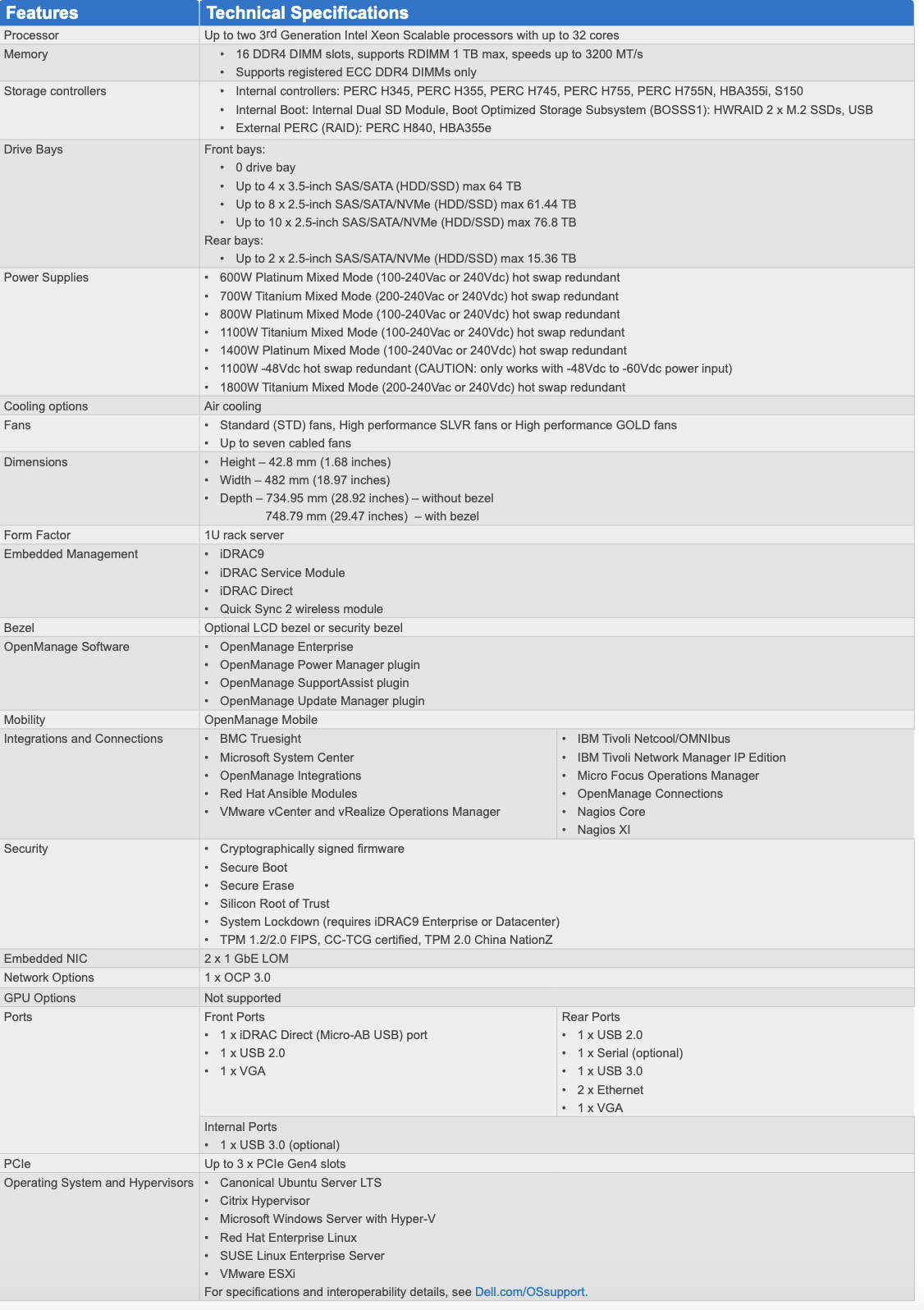 The Dell EMC PowerEdge R650xs, with 3rd generationIntel® Xeon® Scalable processors, designed to meet aspecific set of requirements for medium-duty workloadswith enterprise-class performance and capabilities.